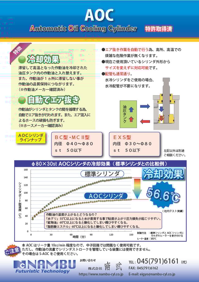 冷却と自動エア抜き効果!「作動油自動循環シリンダ(AOC)」