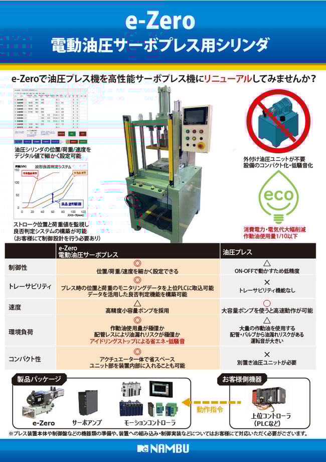 e-Zeroは小さなユニットで高出力、堅牢性が高いといった油圧の長所と電動の位置制御、荷重制御などの制御性を兼ね備えており、さらには電力消費量最大95%削減を可能にし、今後ますます高まる脱炭素要求に大きく貢献できる製品に仕上がっています。